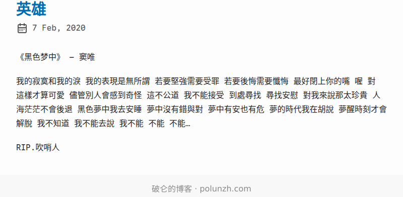 我的寂寞和我的淚 我的表現是無所謂 若要堅強需要受罪 若要後悔需要懺悔 最好閉上你的嘴 喔 對 這樣才算可愛 儘管別人會感到奇怪 這不公道 我不能接受 到處尋找 尋找安慰 對我來說那太珍貴 人海茫茫不會後退 黑色夢中我去安睡 夢中沒有錯與對 夢中有安也有危 夢的時代我在胡說 夢醒時刻才會解脫 我不知道 我不能去說 我不能 不能 不能…