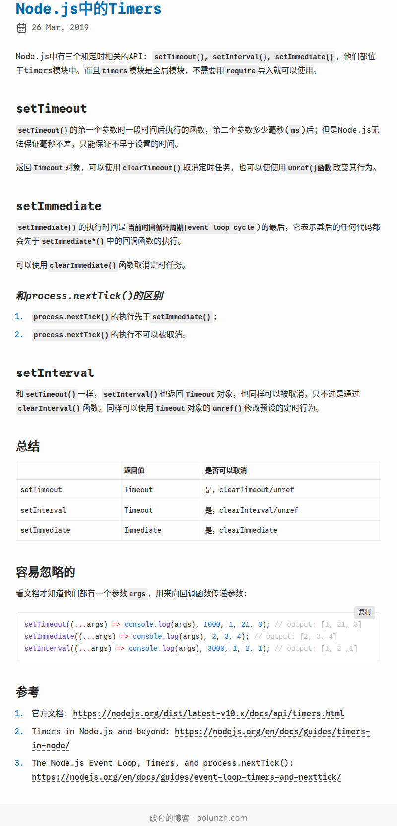 - 官方文档: https://nodejs.org/dist/latest-v10.x/docs/api/timers.html