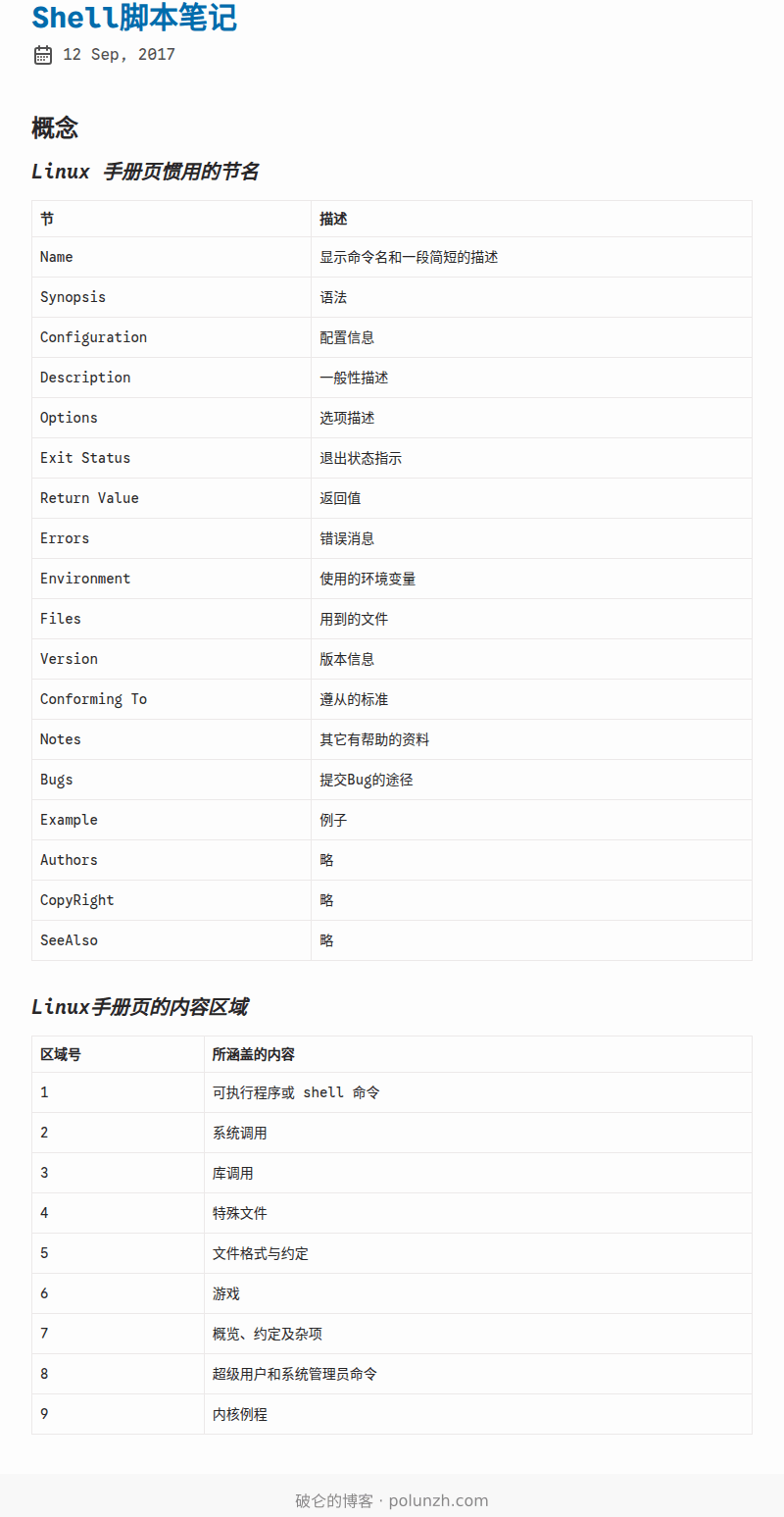 Linux 手册页惯用的节名